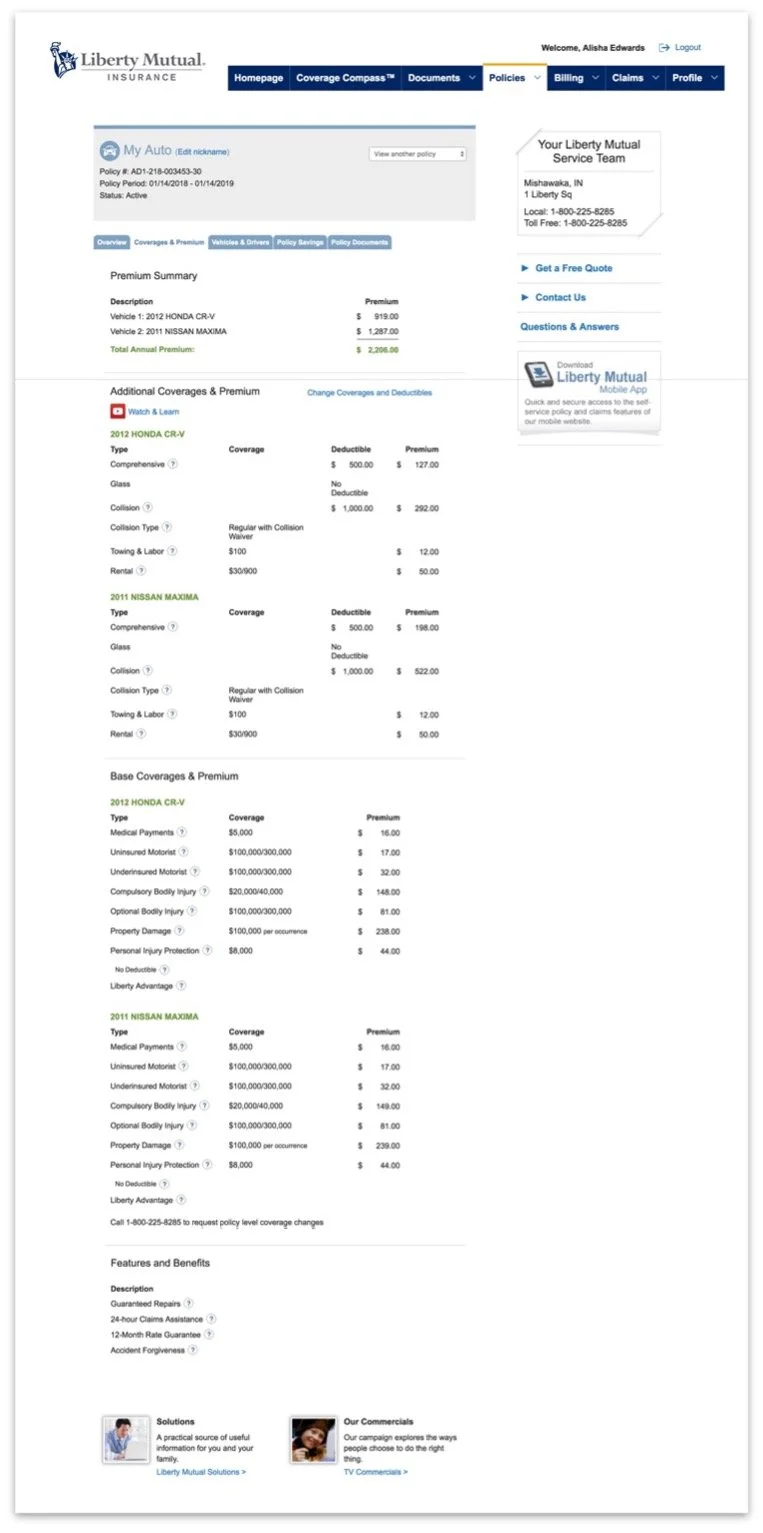 Before - Liberty Mutual Policy experience.